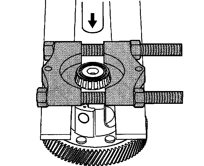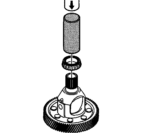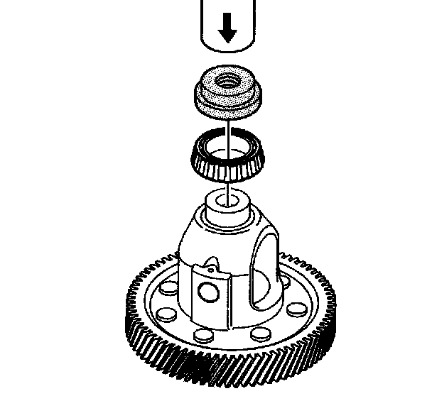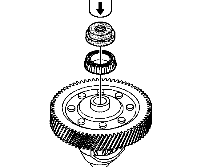1. Using the J 22912-01 and an arbor press, remove the bearing assembly from the front differential carrier assembly - torque converter and differential housing side.