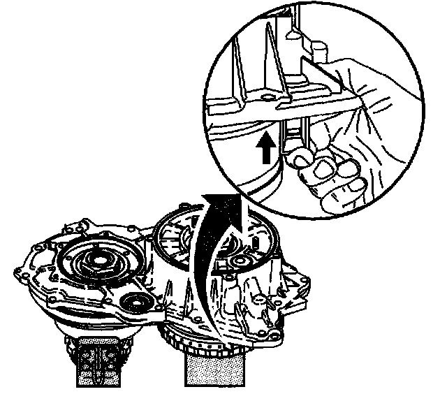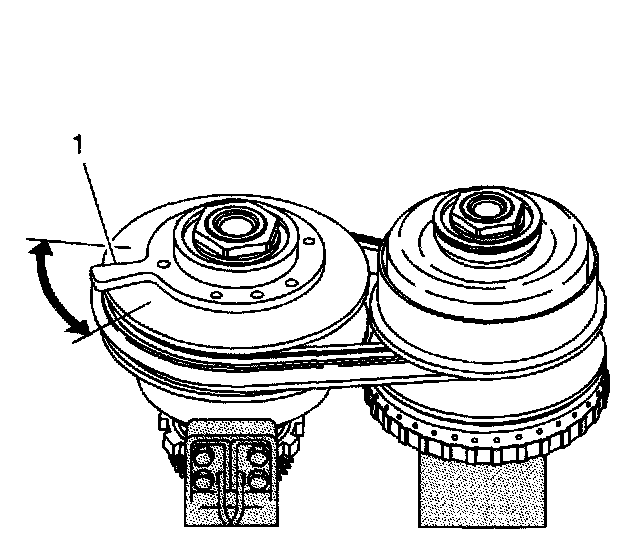 1. Ensure that the driven pulley retainer extension (1) is properly aligned to the case cover assembly.