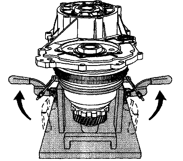7. Using the J 44337, slowly pull up on the two clamp handles in order to release the spring force on the driven pulley assembly.