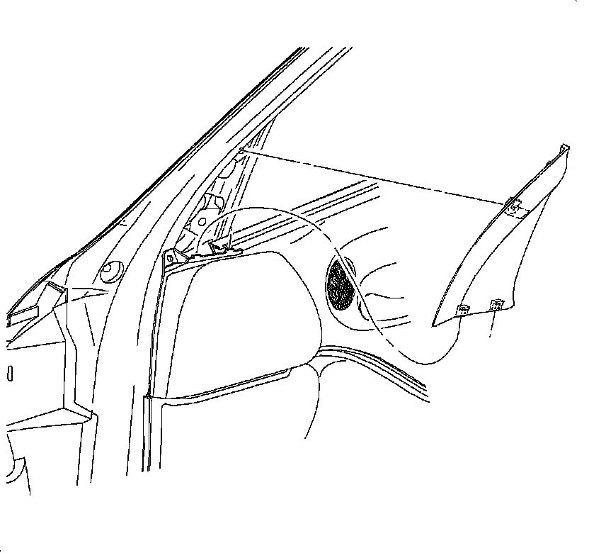 9. Install the mirror trim cover by placing the lower portion of the cover behind the trim panel and push in on the top fastener.
