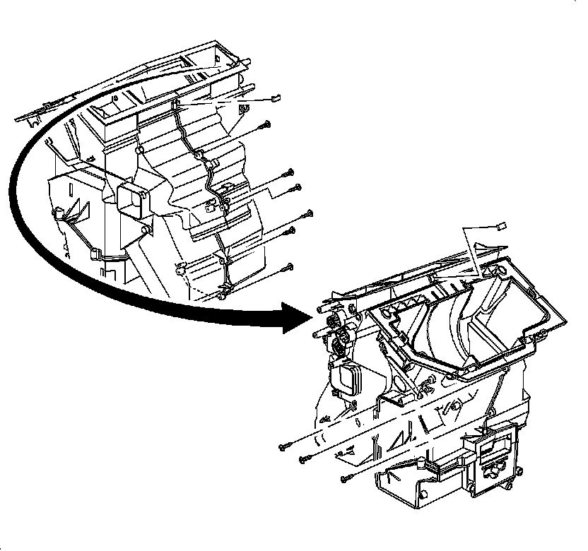 24. With case laying on the left side, lift the right side straight up to separate the HVAC module.