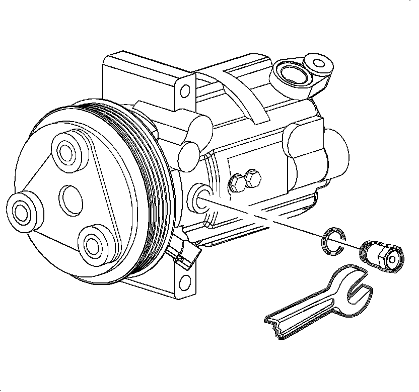 NOTE: When servicing the compressor, keep dirt and foreign material from getting on or into the compressor parts and system. Clean tools and clean work area are important for proper service. The compressor connections and the outside of the compressor should be cleaned before any ON CAR repairs, or before removal of the compressor. The parts must be kept clean at all times and any parts to be assembled should be cleaned with a non-petroleum based solvent and dried with air. Use only lint free cloths to wipe parts. Do not allow solvent to enter compressor or hoses.