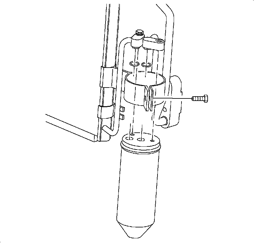 3. Loosen the receiver dehydrator clamp bolt and remove receiver dehydrator.