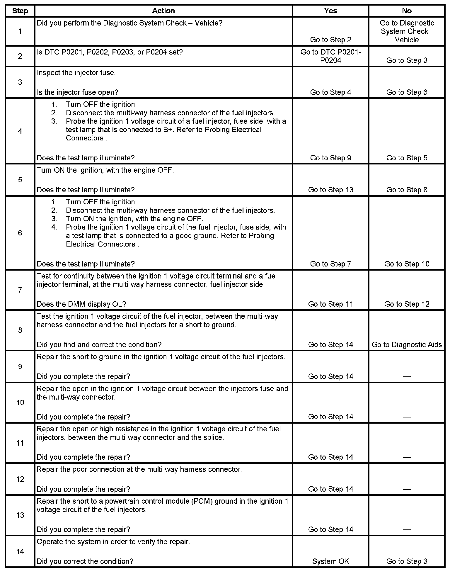 Fuel Injector Circuit Diagnosis