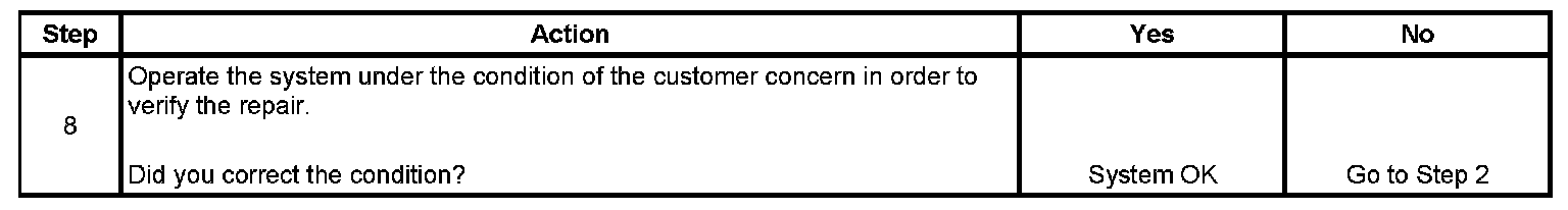 The numbers below refer to the step numbers on the diagnostic table.
