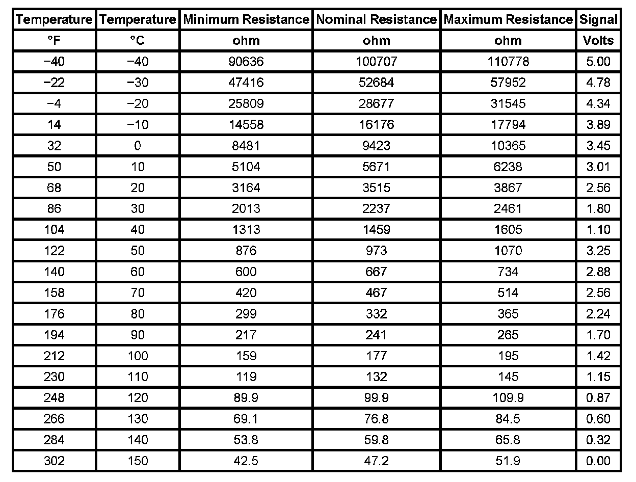 Temperature (TFT) Sensor Specifications: