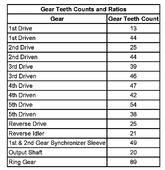Gear Teeth Counts And Ratios: