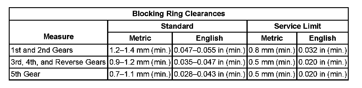 Blocking Ring Clearances: