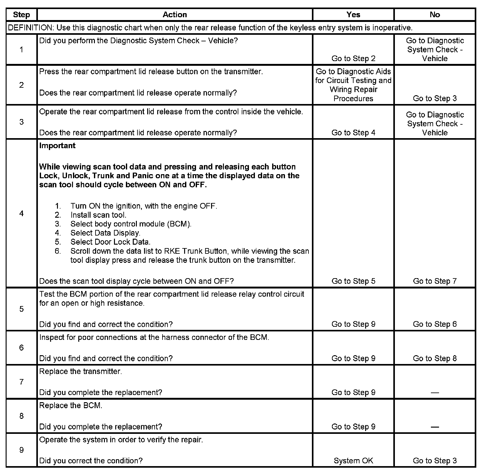 Rear Release Inoperative With Transmitter