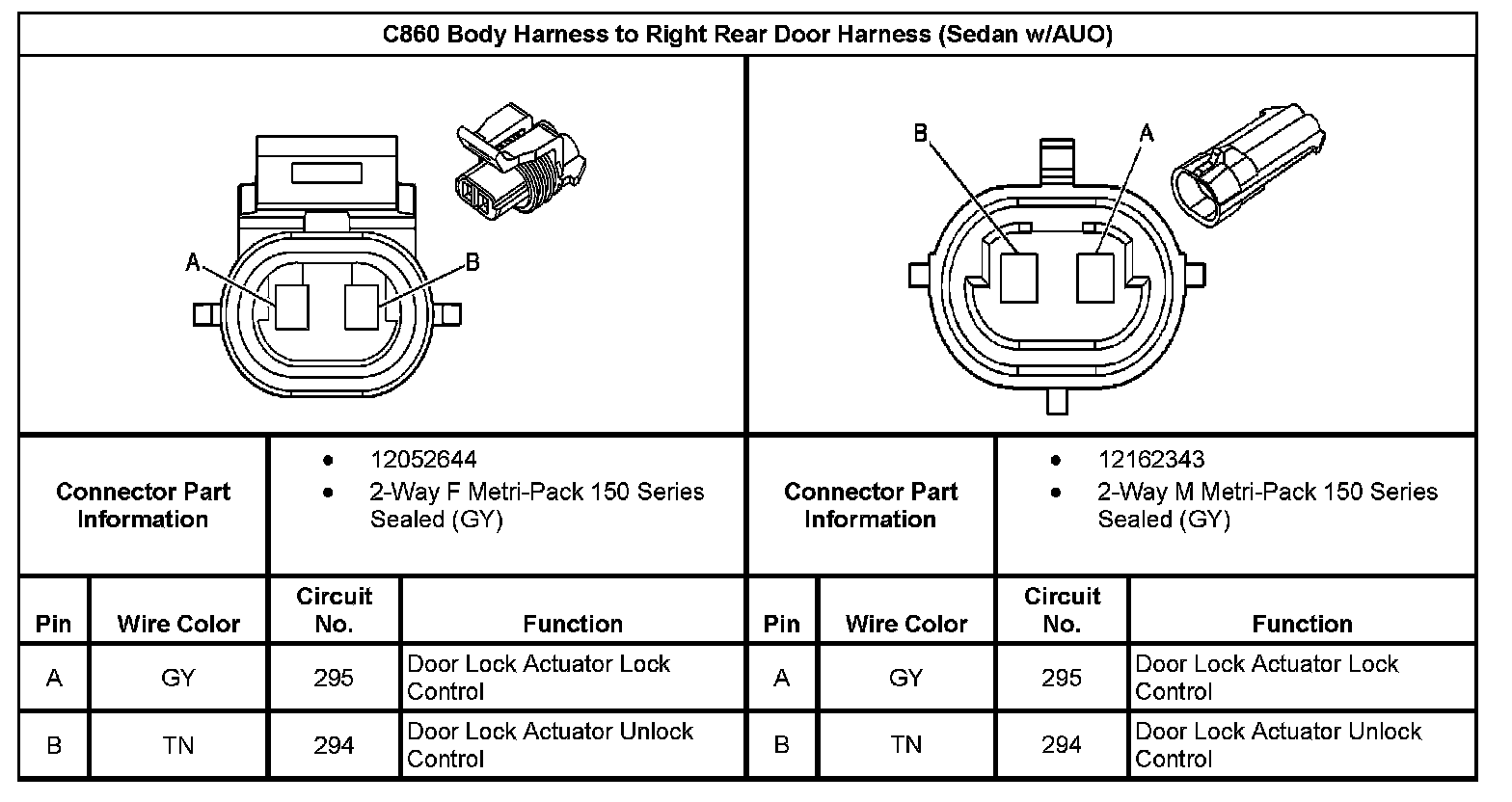 C860 Body Harness To Right Rear Door Harness (Sedan With RPO Code AU0):
