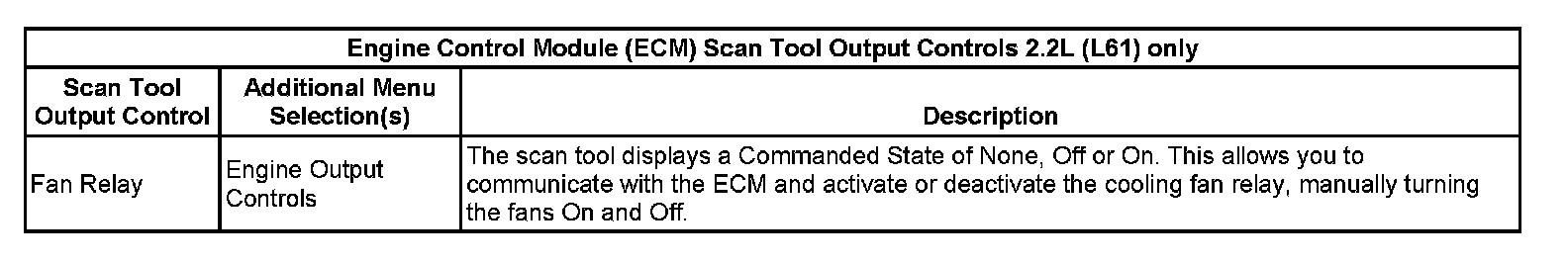 Engine Control Module (ECM) Scan Tool Output Controls 2.2L (L61) only: