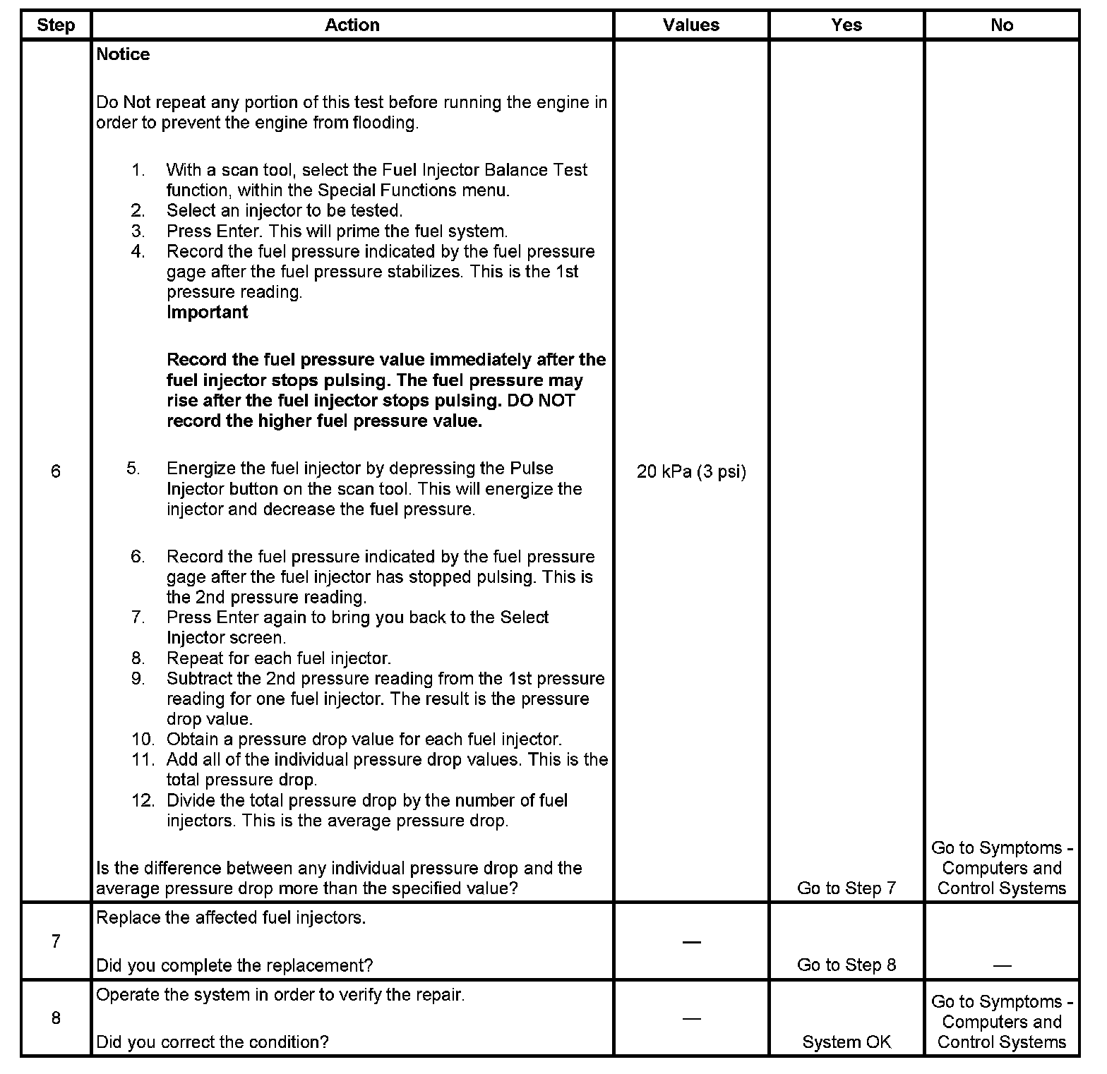 Fuel Injector Balance Test Example (Actual Results May Vary):