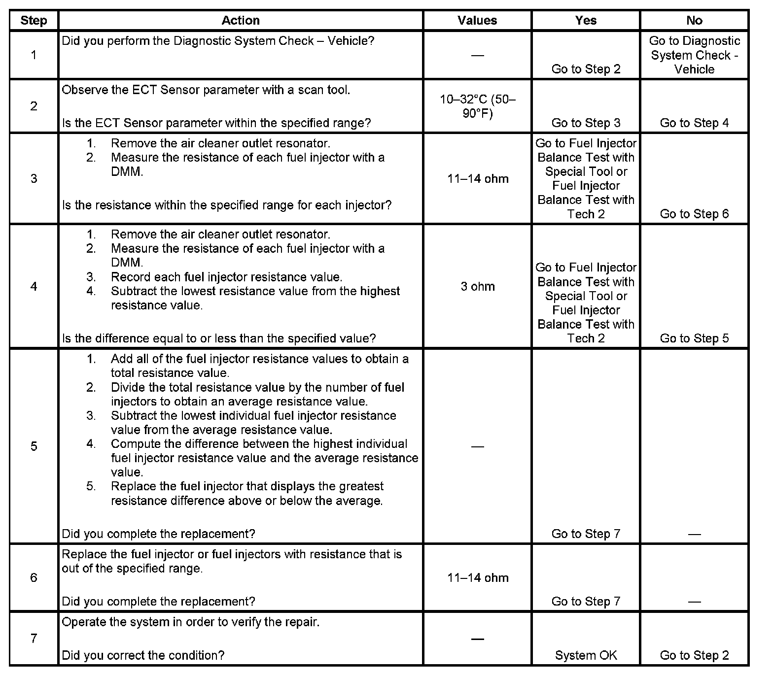 - Perform the fuel injector coil test within the conditions of the customer's concern. A fuel injector condition may only be apparent at a certain temperature, or under certain conditions.