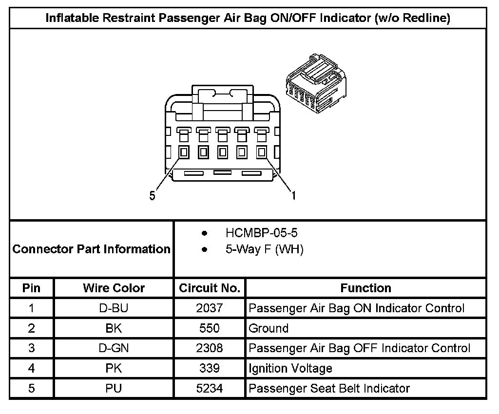 Inflatable Restraint Passenger Air Bag ON/OFF Indicator (Without Redline):