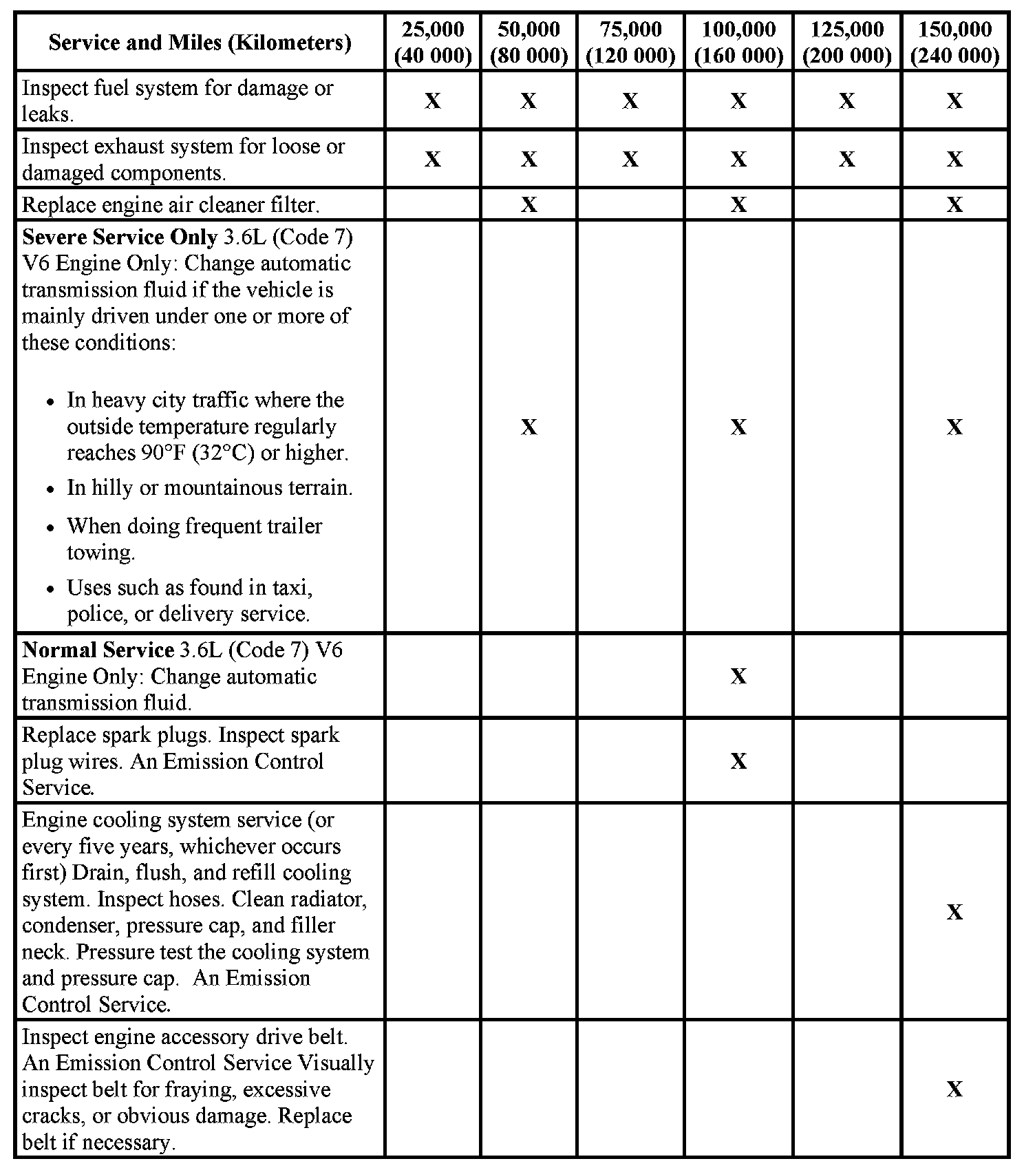 service (I or II) after the indicated miles (kilometers) shown for each item.