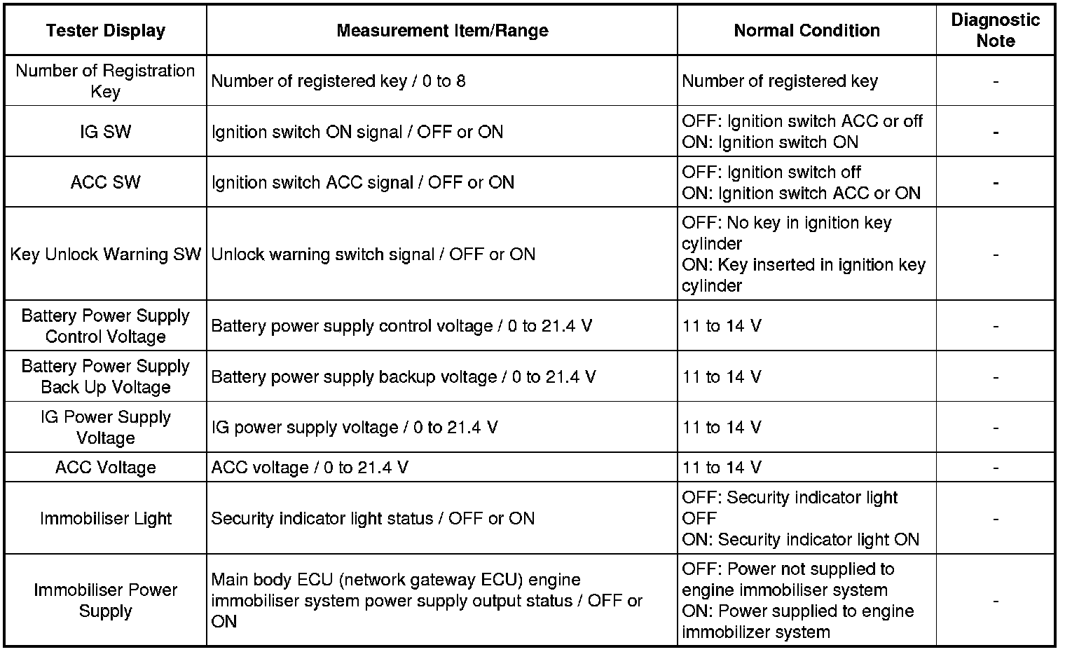 THEFT DETERRENT / KEYLESS ENTRY: ENGINE IMMOBILISER SYSTEM: DATA LIST / ACTIVE TEST; 2013 MY FR-S [03/2012 -]