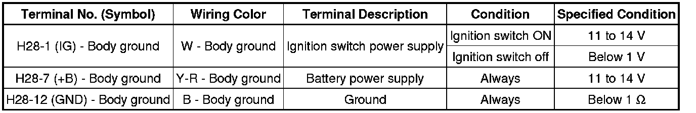 (c) Measure the resistance and voltage between each terminal of the wire harness side connectors and body ground.