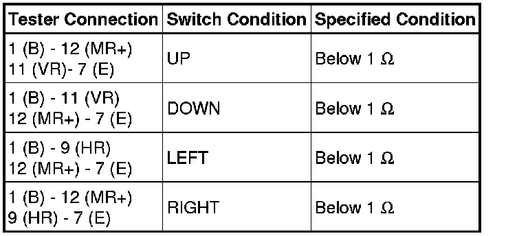 1. INSPECT OUTER MIRROR SWITCH ASSEMBLY