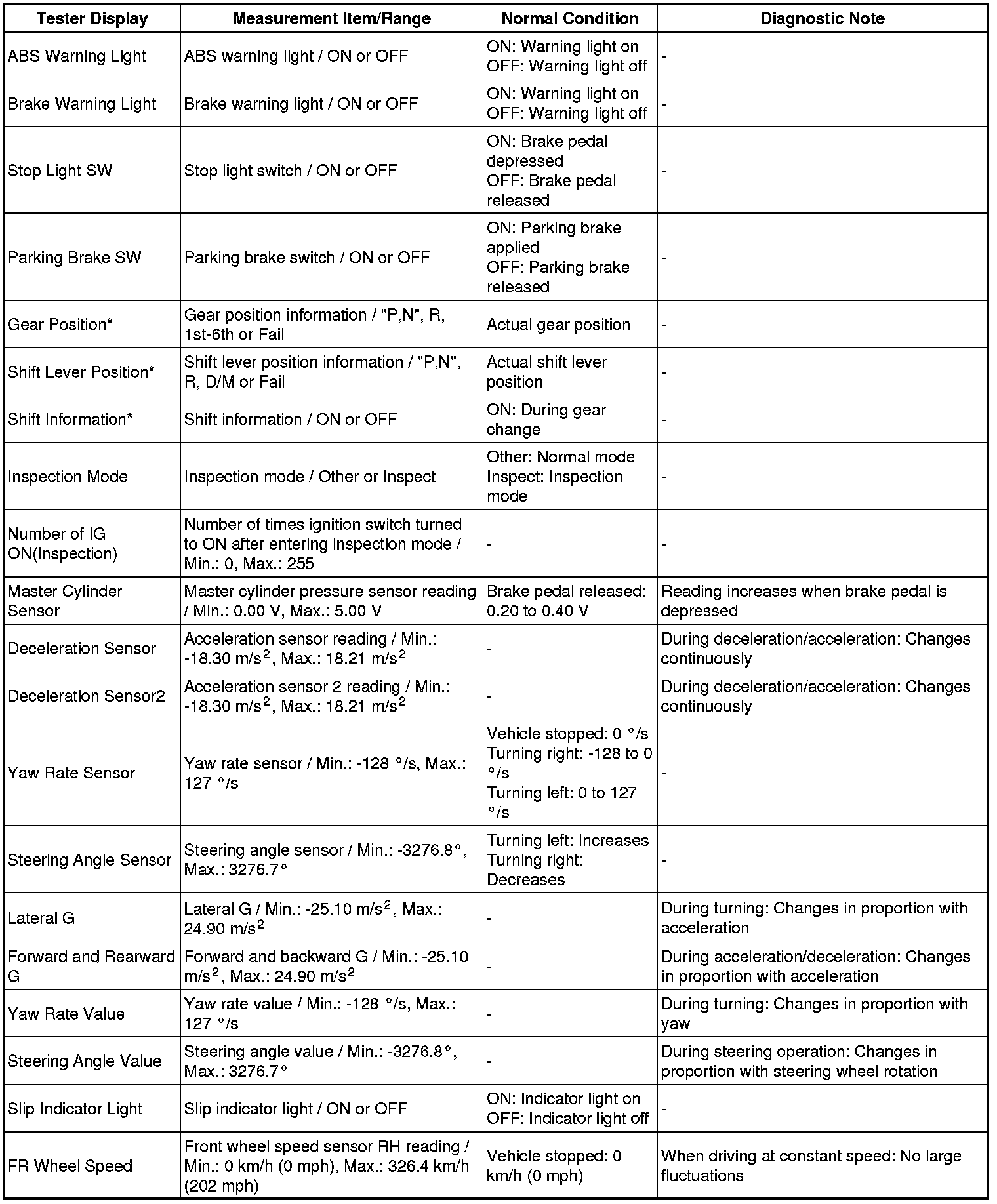 BRAKE CONTROL / DYNAMIC CONTROL SYSTEMS: VEHICLE STABILITY CONTROL SYSTEM: DATA LIST / ACTIVE TEST; 2013 MY FR-S [03/2012 -]