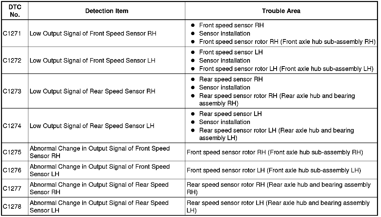 After the ABS warning light goes off, if the vehicle speed exceeds 80 km/h (50 mph), a sensor check code will be stored again.