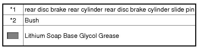 Apply at least 0.3 g (0.01 oz.) of lithium soap base glycol grease to each rear disc brake cylinder slide bush.