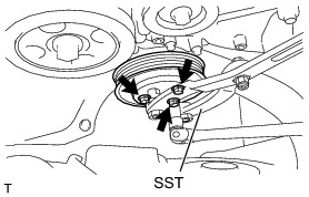 (a) Remove the bolt, No. 1 idler pulley sub-assembly and idler pulley cover.