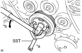 (a) Using SST, hold the crankshaft pulley and loosen the crank pulley bolt.