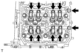 Do not remove the intake and exhaust camshafts first as it may cause a deformation of the cylinder head sub-assembly.