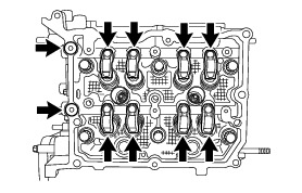 * Install the camshaft housing sub-assembly LH within 5 minutes of applying seal packing.