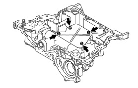 (b) Install the baffle plate to the oil pan sub-assembly with the 4 bolts.
