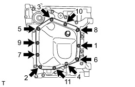 (c) Tighten the 11 bolts in the order shown in the illustration to install the No. 2 oil pan sub-assembly.