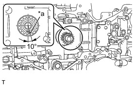 To avoid damaging the valves, do not turn the camshaft timing exhaust gear assembly LH more than the zero-lift range (The range where camshaft timing exhaust gear assembly LH can be turned lightly by hand).