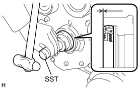 (b) Using SST and a hammer, tap in the new oil seal until its surface is flush with the timing chain or belt cover sub-assembly edge.