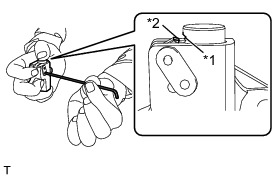 (c) Insert an approximately 1 mm (0.0394 in.) diameter wire or the like into the chain tensioner assembly through the stopper pin hole, and hold the plunger.