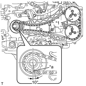 With the chain sub-assembly (for bank 1) removed, valve heads may contact each other if the camshafts are turned, causing the valve stems to bend. To avoid this, do not turn the intake camshaft RH and exhaust camshaft RH more than the zero-lift rang (The range where the camshafts can be turned lightly by hand).