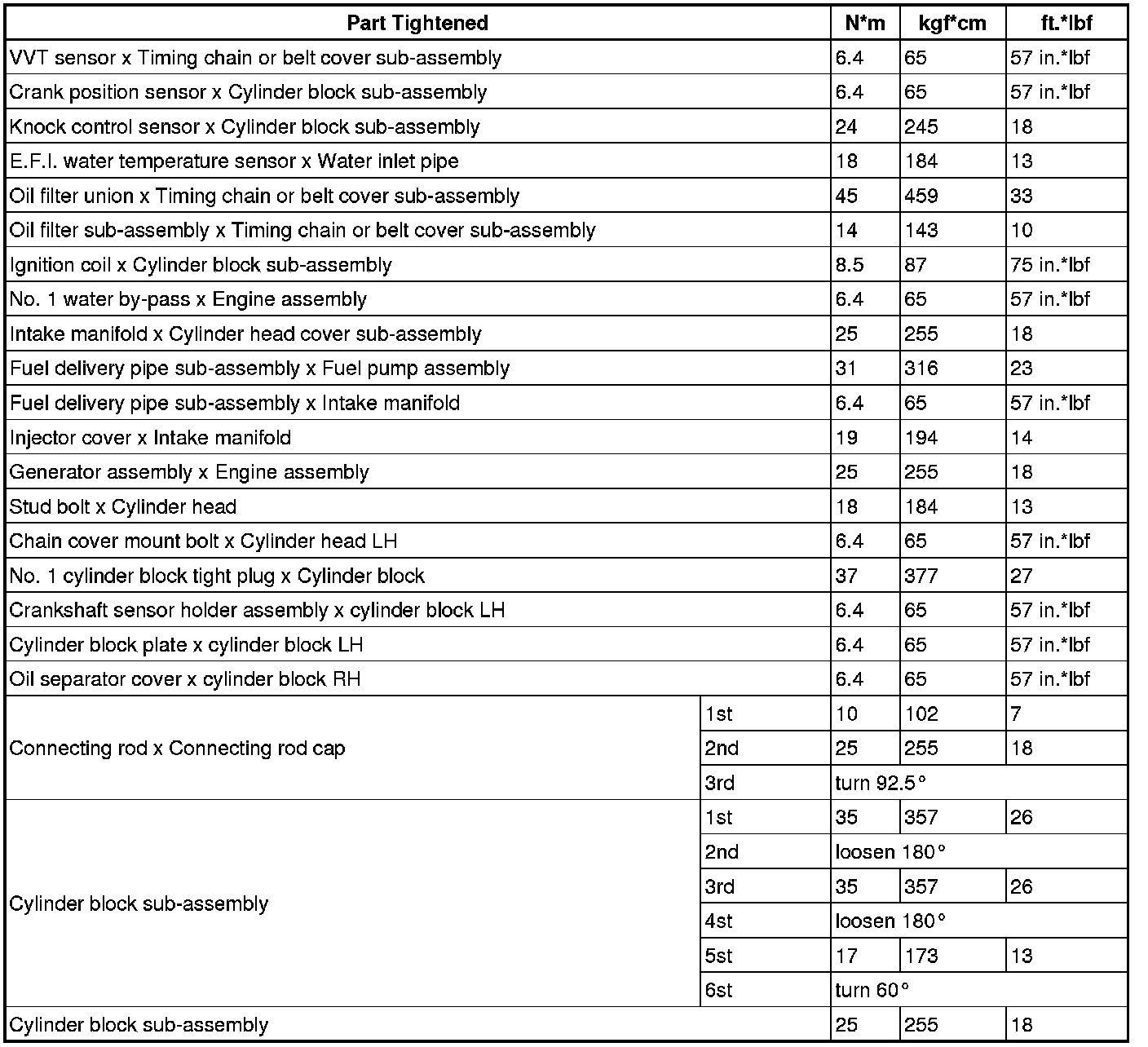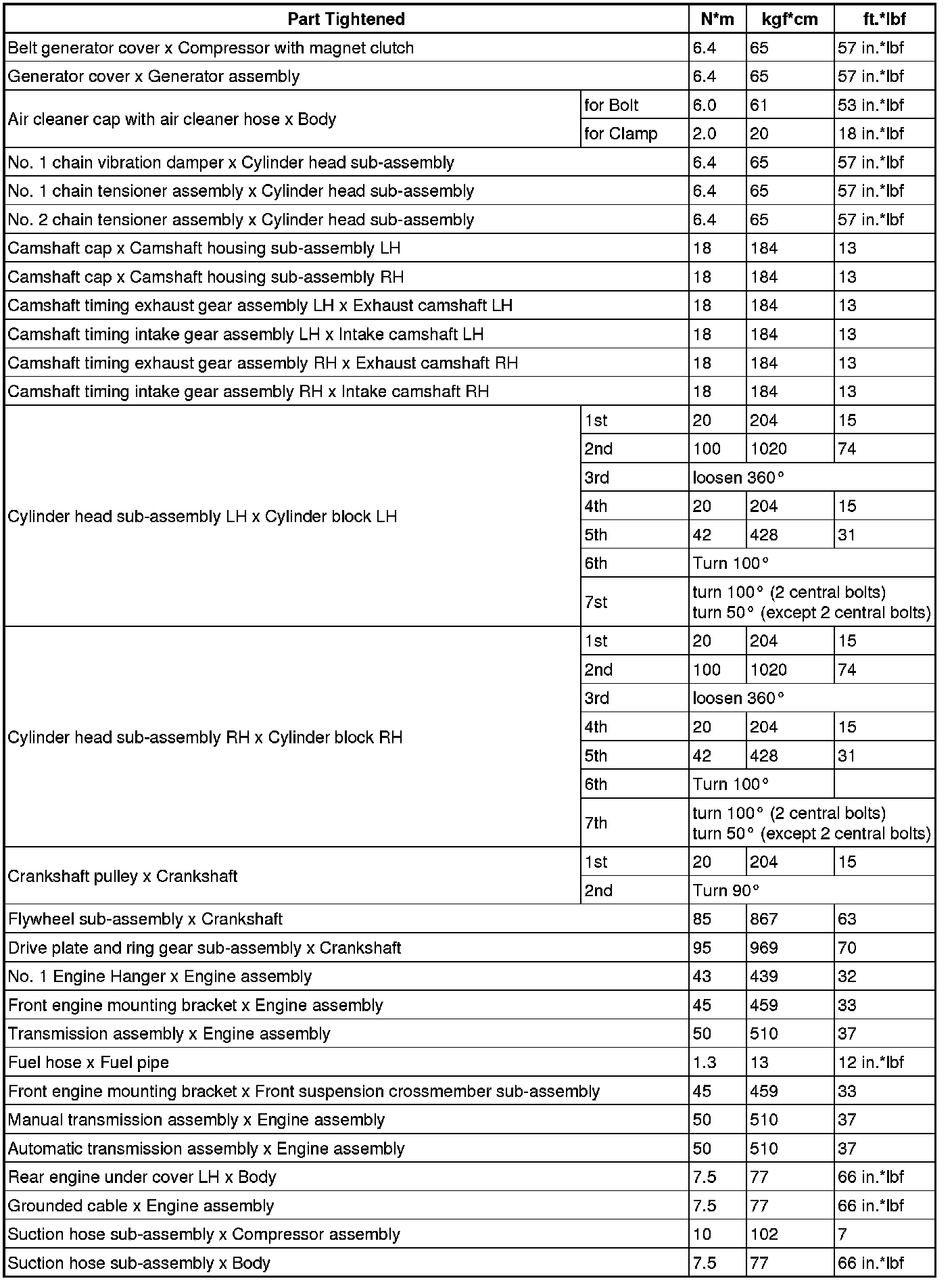 SPECIFICATIONS: FA20 ENGINE MECHANICAL: TORQUE SPECIFICATIONS; 2013 MY FR-S [03/2012 -]