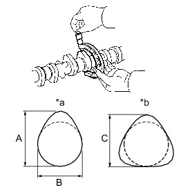 If the clearance is not as specified or if uneven wear is found, replace each camshaft cap and camshaft housing as a set. If necessary replace the camshaft.