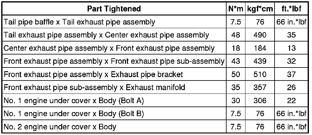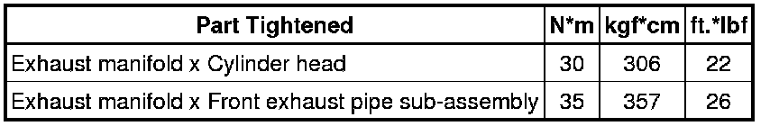 SPECIFICATIONS: FA20 INTAKE / EXHAUST: TORQUE SPECIFICATIONS; 2013 MY FR-S [03/2012 -]