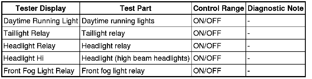 LIGHTING (EXT): LIGHTING SYSTEM: DATA LIST / ACTIVE TEST; 2013 MY FR-S [03/2012 -]