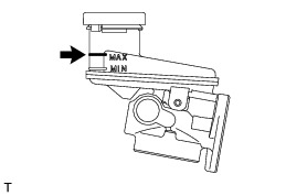 Add clutch fluid to keep the level between the MIN and MAX lines of the master cylinder reservoir sub-assembly while bleeding the clutch.