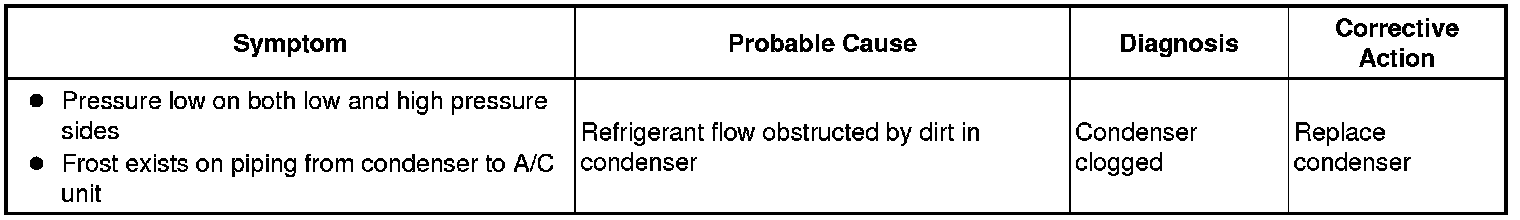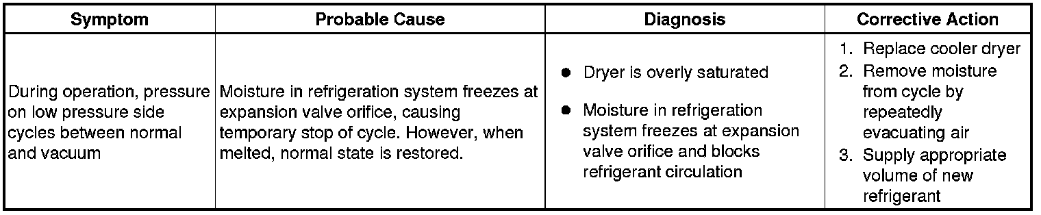 (2) The A/C system periodically changes between normal and improper function due to moisture in the refrigerant system.