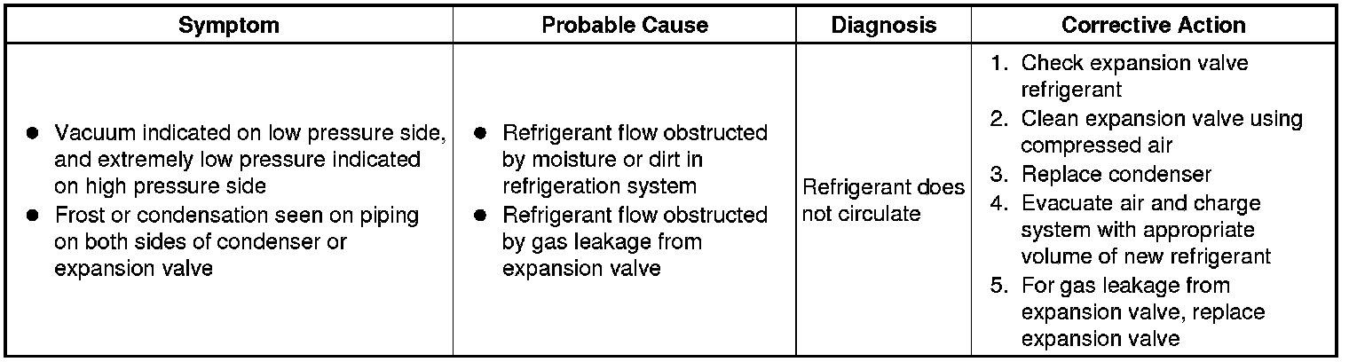 (4) The A/C system does not function effectively due to poor circulation of the refrigerant.