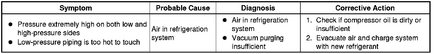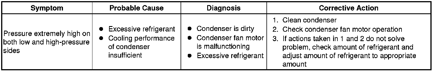 (6) The A/C system does not function effectively due to the system being overcharged with refrigerant or insufficient cooling of the condenser.