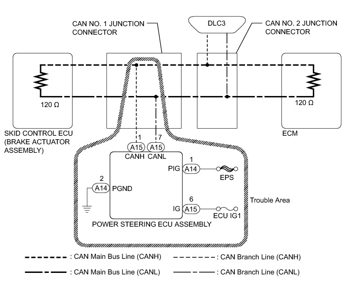NG -- REPAIR OR REPLACE CAN BRANCH LINE OR CONNECTOR (POWER STEERING ECU ASSEMBLY)