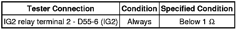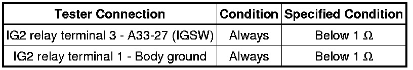 11. CHECK HARNESS AND CONNECTOR (IG2 RELAY - IGNITION OR STARTER SWITCH ASSEMBLY)