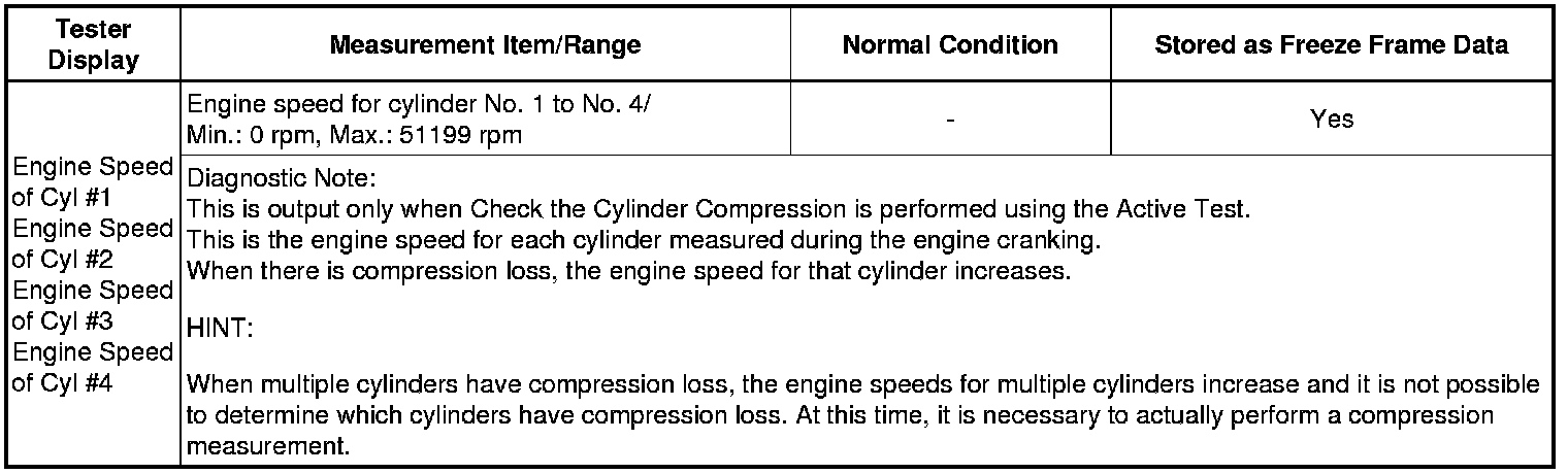 Cylinder #1 Misfire Count to Cylinder #4 Misfire Count