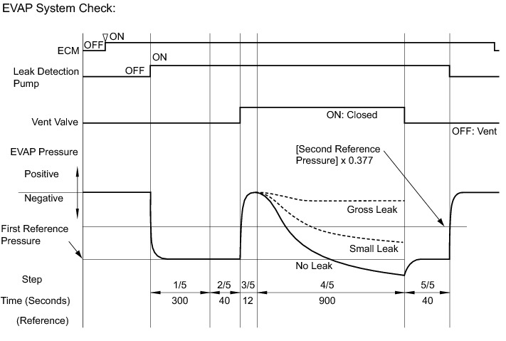 * The Evaporative System Check (Automatic Mode) consists of 5 steps performed automatically by the Techstream. It takes a maximum of approximately 24 minutes.