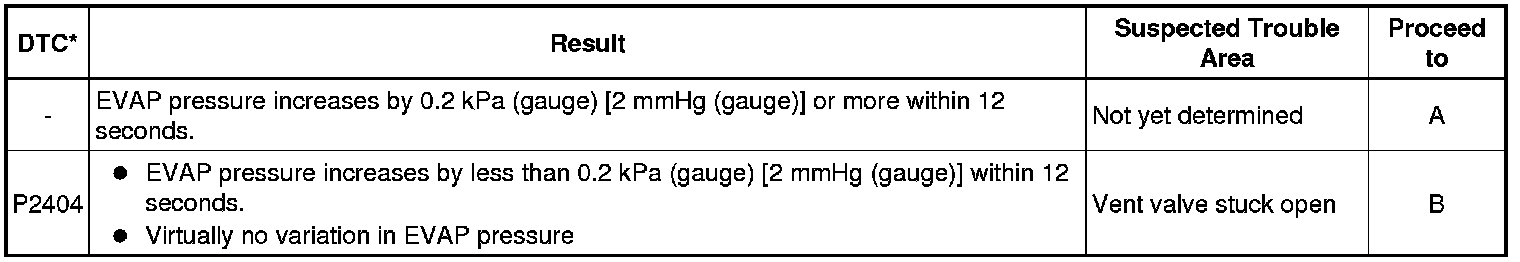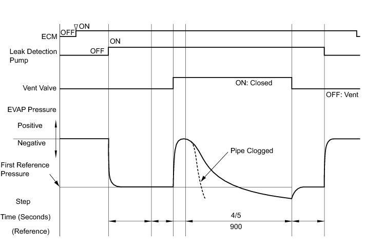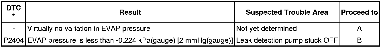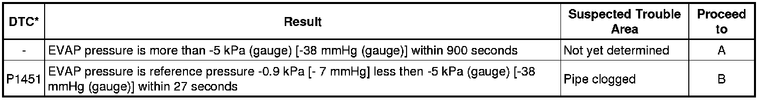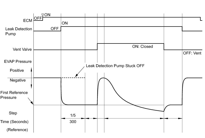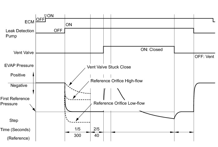 If the reference pressure difference between the first and second checks is more than the specification, all the DTCs relating to the reference pressure (P0455, P0456, P1451, P2404) will all be stored.
