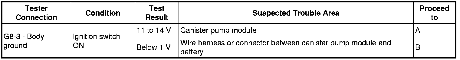 B -- INSPECT CANISTER PUMP MODULE (POWER SOURCE FOR VENT VALVE)