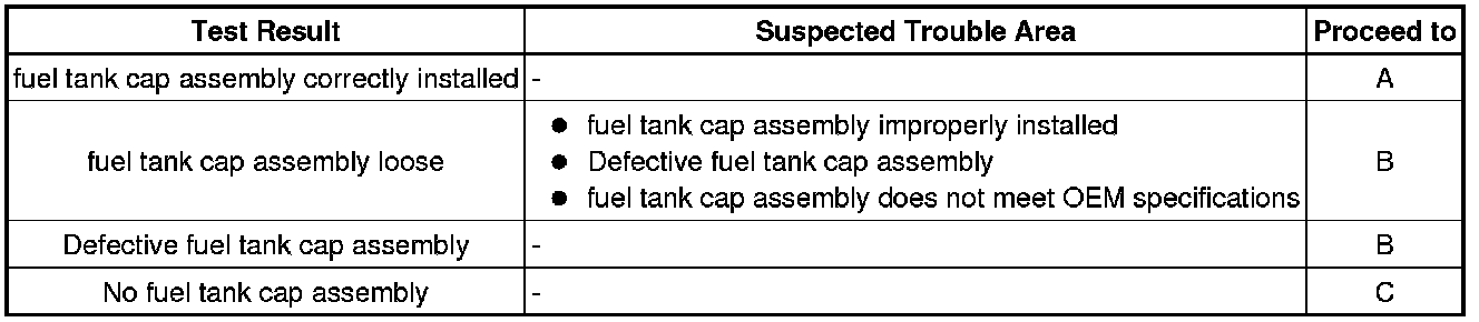 (a) Check that the fuel tank cap assembly is correctly installed and confirm that the fuel tank cap assembly meets OEM specifications.